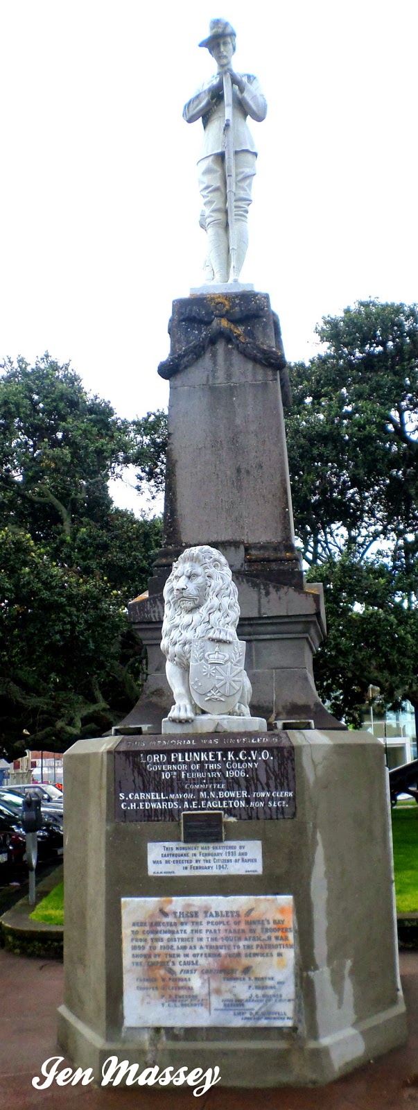 | Although there are many statues to do with this war Napier's is the only one in New Zealand which has the soldier in mourning with his rifle pointing down |